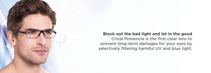 Crizal Prevencia is the first clear lens to prevent long-term damages for your eyes by selectively filtering harmful UV and blue light.
